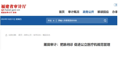 據(jù)福建省審計(jì)廳10月25日?qǐng)?bào)道,莆田市上半年針對(duì)6家基層公立醫(yī)院2021年至2023年醫(yī)用設(shè)備和耗材采購(gòu)使用及醫(yī)療收費(fèi)情況進(jìn)行專項(xiàng)審計(jì)調(diào)查。發(fā)現(xiàn)6家醫(yī)院存在部分設(shè)備閑置低效、藥品及低值耗材采購(gòu)和使用管理不規(guī)范、管理制度缺失、違規(guī)收費(fèi)等共性問(wèn)題。