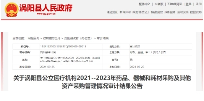 9月25日,《關(guān)于渦陽(yáng)縣公立醫(yī)療機(jī)構(gòu)2021--2023年藥品、器械和耗材采購(gòu)及其他資產(chǎn)采購(gòu)管理情況審計(jì)結(jié)果公告》下發(fā)。