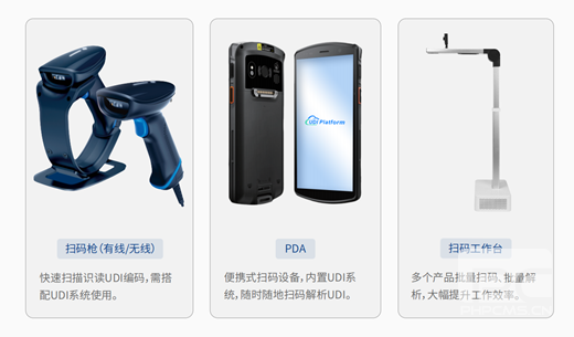 UDI掃碼解析:引入掃碼設(shè)備終端(PDA手持終端/掃碼槍),實現(xiàn)對UDI碼的便捷掃碼解析,對于不同發(fā)碼體系、不同碼制的UDI碼,均具有對應(yīng)的掃碼解析編譯機制。