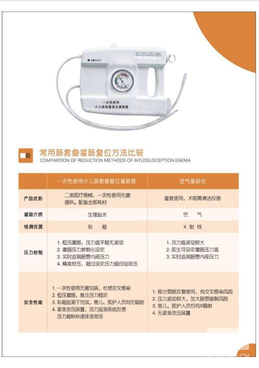 用于小兒腸套疊B超監測下診斷及水壓灌腸復位時使用。
