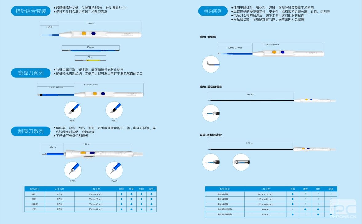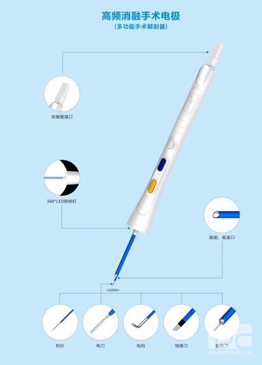 用于各種外科手術中用于組織切割、分離、止血及組織凝固等。高頻消融手術電極(多功能手術解剖器)兼具電切、電凝、伸縮、插拔等綜合功能為一體,在狹小操作空間內,避免術中更換手術器械,減少手術時間。