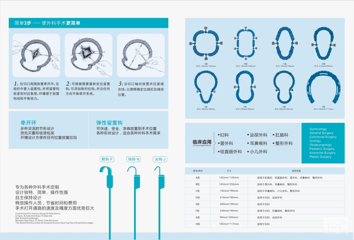 公司搭建了小兒外科、成人外科、手術室耗材和實驗室儀器等四大產品線,開發生產“直腸粘膜吸引活檢系統”、“一次性使用小兒腸套疊球囊導管灌腸器”、“消融手術電極(多功能手術解剖器)”、“一次性使用外科牽開固定器及拉鉤”、“醫用無菌防護套”、“病理袋”等,致力于解決臨床疑難需求。
