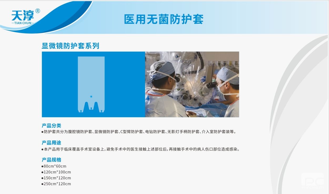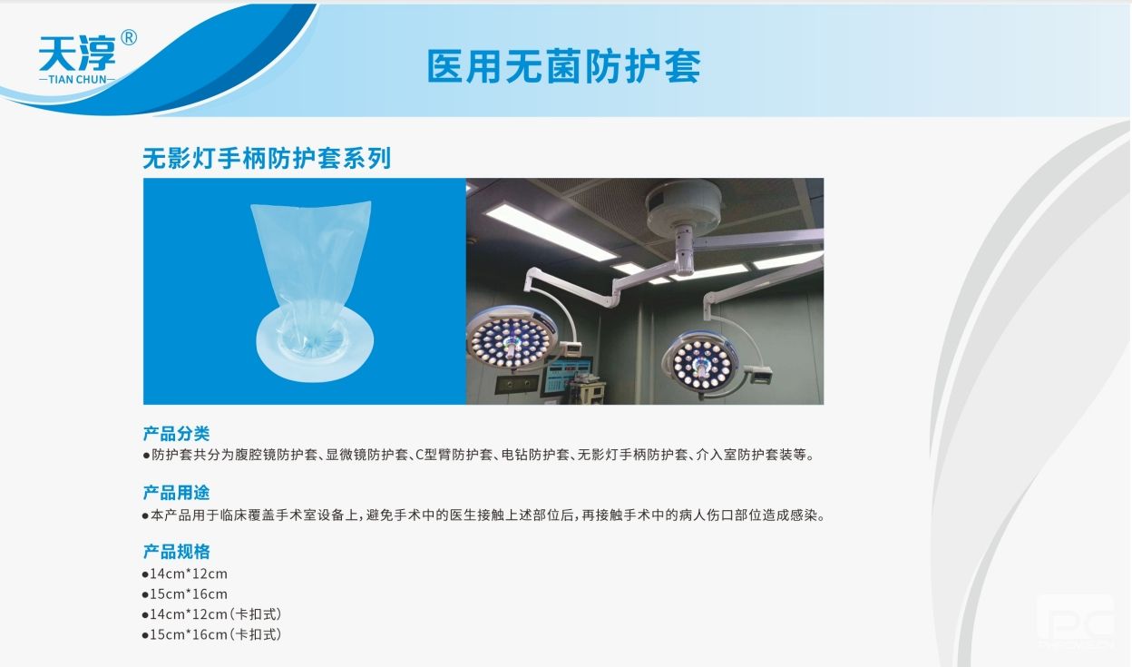 本產品用于臨床覆蓋手術室設備上,避免手術中的醫生接觸上述部位后,再接觸手術中的病人傷口部位造成感染。