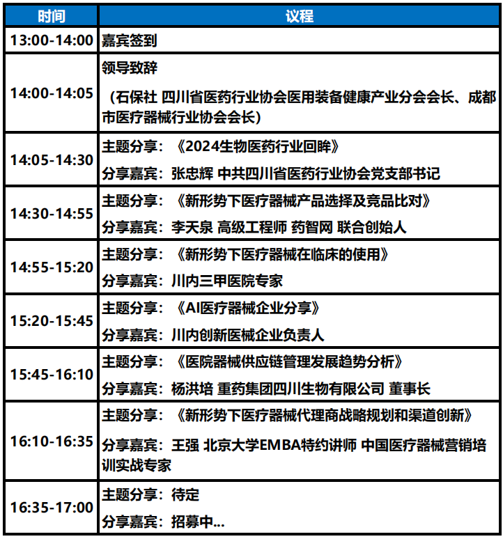 3月7日,由藥智網和成都市醫療器械行業協會共同主辦的“成渝新形勢下醫療器械產業轉型升級論壇”將在成都舉辦。此次會議將匯聚行業專家、企業代表、醫療機構等多方力量,圍繞最新政策解讀、AI醫療器械、臨床使用實踐、產品選擇、戰略規劃等核心議題展開深入交流及案例分享。通過對話交流,我們期待匯聚各方智慧,共同為醫療器械產業發展指明方向,破除瓶頸。