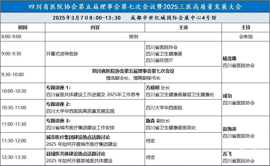 第五屆理事會第七次會議、2025三醫(yī)高質(zhì)量發(fā)展大會:成都世紀城國際展覽中心4號館。