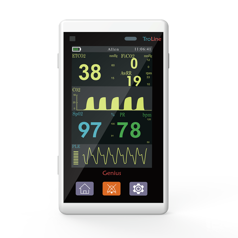 手持式的呼末二氧化碳監護儀是一款專門用于監測呼吸末二氧化碳(EtCO2)和血氧飽和度(SpO2) 的手持式信息化監護儀。區別于病人監護儀監護,內置ETCO2模塊,整機厚度超薄,更加利于操作與維護。