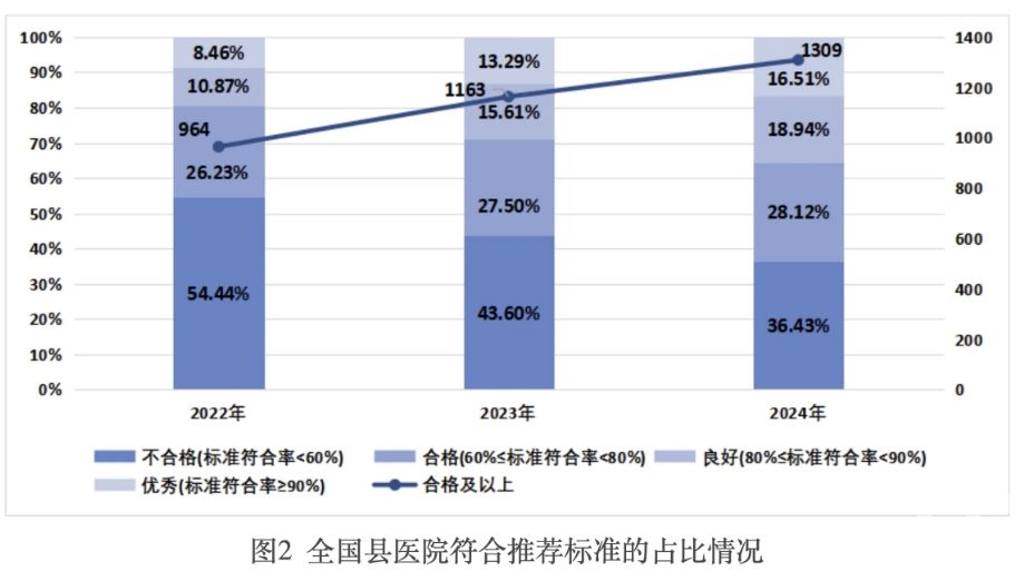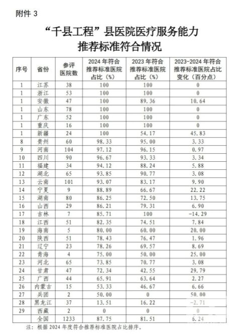 1233家“千縣工程”縣醫院中符合推薦標準的達1082家,占比87.75%,較2023年提高6.24個百分點,“千縣工程”重點工作任務得到有效落實。