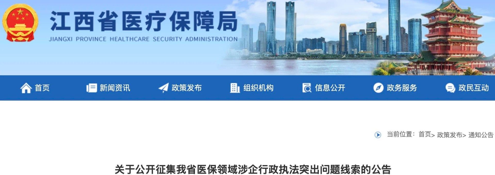近日,江西醫保局發布《關于公開征集我省醫保領域涉企行政執法突出問題線索的公告》(簡稱《公告》),征集時間為5月23日至年9月30日。