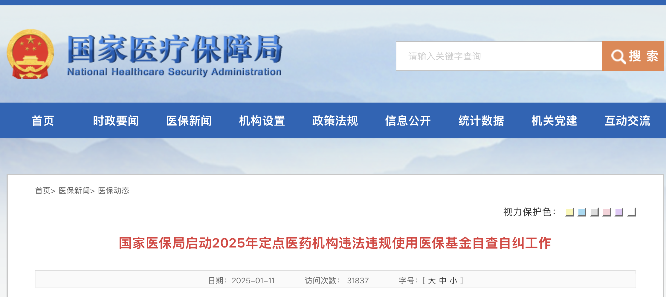 這是國家醫保局繼2024年首次在全國范圍組織開展定點醫療機構自查自糾工作后,第二年開展這項工作,也是零售藥店首次被納入自查自糾范圍。