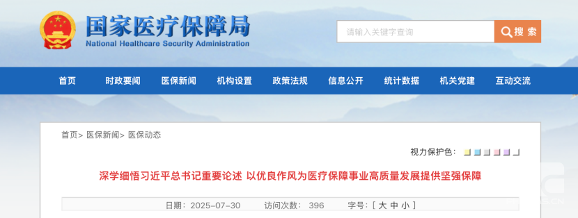 7月30日,國家醫保局發布國家醫療保障局黨組書記、局長章軻署名文章《深學細悟習近平總書記重要論述以優良作風為醫療保障事業高質量發展提供堅強保障》。