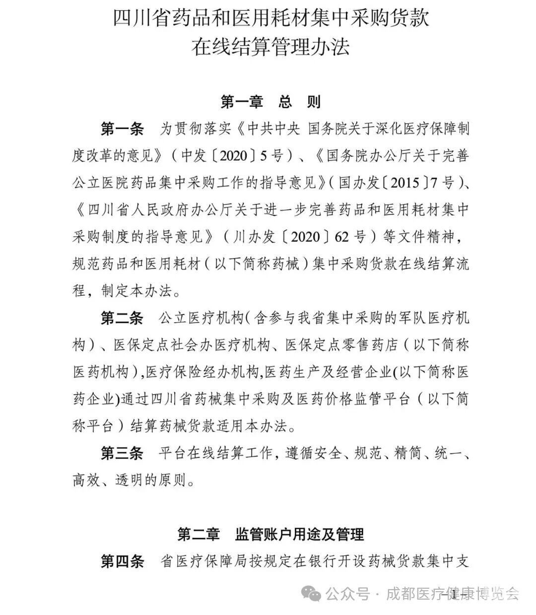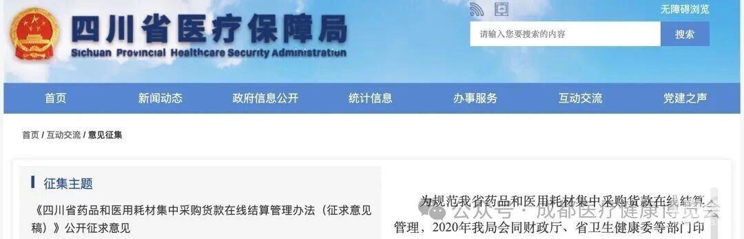 近日,四川醫保局發布《四川省藥品和醫用耗材集中采購貨款在線結算管理辦法(征求意見稿)》(簡稱《意見稿》,完整見文末)。