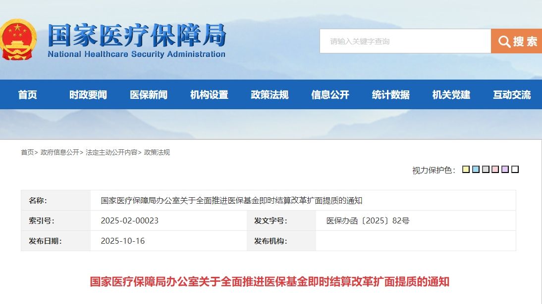 10月16日,國家醫保局辦公室發布了《關于全面推進醫保基金即時結算改革擴面提質的通知》。